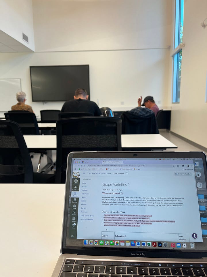 Napa Valley College also offers one of the best Viticulture and Winery Technology programs taught by a robust team of professionals. This past harvest, I got to attend Intro to Viticulture, taught by Professor Molly Hodgins, veteran Napa viticulturist now focused on building the best wine program California has to offer. Was it easy to finish a full day of harvest and drive four hours for night classes? No, but the lessons learned were priceless. Professor Hodgins leaves no stone unturned, literally and metaphorically, in her goal of providing students with quality-focused viticulture practices she experienced in the field. No glossy terroir terms to be found, you will learn that there’s way more to photosynthesis than what was taught during K12, the vitality of rootstock selection for vineyard quality, and develop a new appreciation for soil science. Her class has officially replaced “mitochondria as the powerhouse of the cell” with “guard cells control the opening and closing of the stomata”. By the end of the semester, Professor Hodgin’s passion for teaching was so infectious that we all left wondering whether we should pursue a burgeoning career in grapevine science.